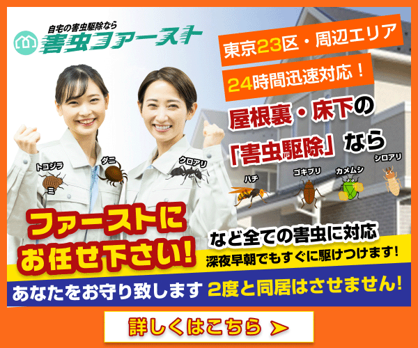 被害を防ぐためにも、最短で即日に対応してくれる害虫駆除110番へ早めに相談しましょう。