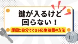 異物の詰まりや部品の劣化が進むと、鍵が奥まで入らなくなったり、差し込めても全く回らない状態になります。